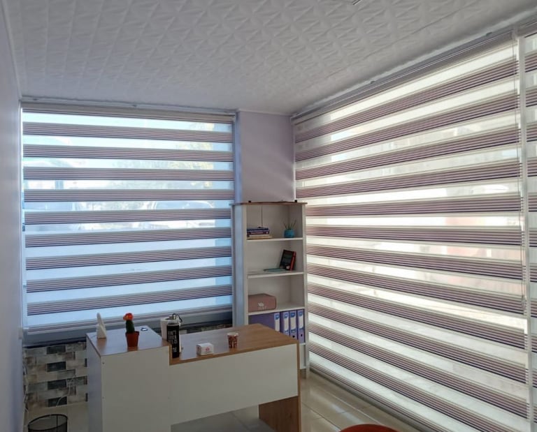 Zebra perde, tül ve stor görünümünü tek sistemde birleştirir; ışık geçirgenliğini şeritlerle pratik şekilde yönetmenizi sağlar.